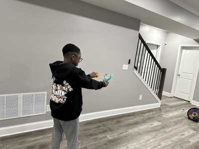 My 3 boys have always loved Koosh balls. They have also been endlessly entertained by making slingshots with sticks & rubber bands. The Koosh slingshot takes it up a notch! It is a brilliant spin on a timeless toy and seems to be made to last (a rarity these days!). It was fun to play both indoors and outdoors and can be enjoyed by all ages. While my 8-year-old niece had a blast trying it out, my 14 and 18 year old sons can't wait until their 20-year-old brother comes home from college to see who can slingshot the Koosh ball the longest distance.