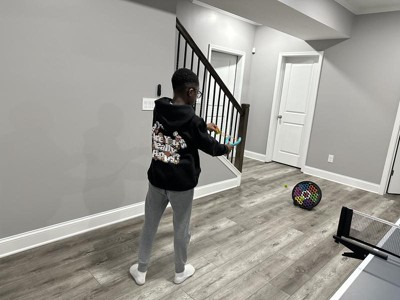 I grew up playing with the larger koosh balls so I was so excited to introduce my kids to koosh! The little balls are so fun to play with and toss around. I love that they fit in the handle of the slingshot. The slingshot itself has a bit of a learning curve and my son needed a little encouragement to keep trying. We paired it with the Koosh Face-off and that was a blast! The two together were great and adding the target made the slingshot that much more fun!