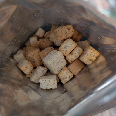 [This review was collected as part of a promotion.] These are very yummy, better-than-your-average crouton. They are crispy and have a great texture. They taste like they’re made with real bread, as a good crouton should be. The croutons are more salty than peppery, and they’ll go with a lot of different foods. I think they’ll go particularly well in soups that could use some texture. I love that the ingredient list is very short, with only eight on there. It is free of artificial ingredients, and is vegan friendly. I will repurchase. I received an incentive to write this review.
