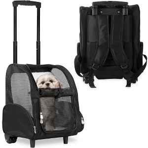 - 3 different ways to carry - telescoping handle, strap handle and Backpack straps provide 3 Easy and convenient carrying solutions for different everyday needs. Lots of storage - 2 Large pockets are perfect for safely storing the stuff your pet can never be without.