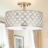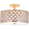 The flush mount design allows it to fit snugly against the ceiling, making it perfect for rooms with lower ceilings where you want to maximize space. The intricate pattern of the shade gently diffuses light, creating a warm and inviting atmosphere that enhances any decor.