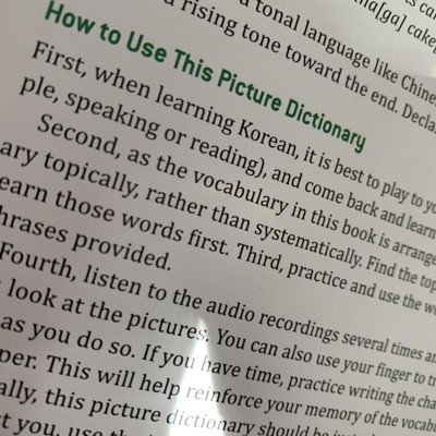 This Korean picture dictionary is beautiful and very helpful. The pictures make learning Korean easier and more enjoyable. It is a great book for beginners, and it also helps me practice my English. I am very happy with this purchase.
