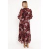 Korina Long Sleeve Maxi Dress - Burgundy Brandy Bloom M