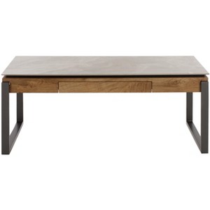 Transform your living space with the sophisticated Kota Coffee Table. With a functional drawer this table is practical and stylish. The blend of stone, wood, and metal materials brings structure and a sense of modern charm to your home.