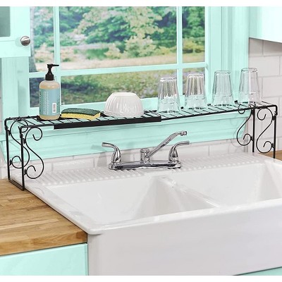 KOVOT Over the Sink Expandable Shelf Add Additional Storage for Soaps, cleansers, sponges & More 8.5" H x 5.75" D x Length 24.5" to 40.75" - Black