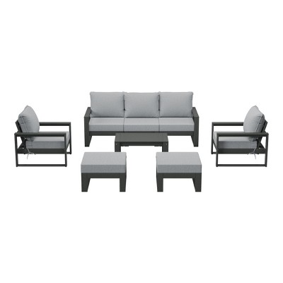 Kozyard 4 Pieces Metal Patio Conversation Set with Gray Breathable Textilence Seating Powder Coated Metal Frame for Garden Poolside Backyard (Gray)