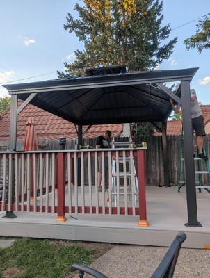 My+husband+and+I+resurfaced+our+deck+this+summer+from+lumber+to+TimberTech%2C+and+as+a+treat%2C+we+added+this+beautiful+Kozyard+12x10+gazebo.+My+son+and+my+daughter%27s+bf+came+over+and+built+the+gazebo+in+a+day%21%21++They+were+both+very+impressed+with+the+engineering.+They+struggled+with+the+plastic+taps+on+the+ceiling+panels+and+felt+the+company+should+pull+them+from+the+design.+Tomorrow%2C+we+must+add+the+mosquito+netting+and+curtains%2C+which+are+anchored+and+entirely+built.+