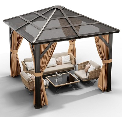 Kozyard Caesar Aluminum Hardtop Gazebo Metal Pavilion with Netting and Shaded Curtains for Patio, Backyard Deck 12ft x 14ft Gray
