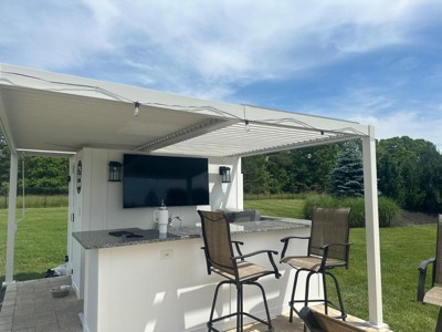 We wanted to build an outdoor oasis, and this was exactly what we needed! We were able to use this framework to put a bar and bathroom with seating and plenty of storage. This was easy to assemble with two people on the job. I love having the option to open or close the louvers. It allows for plenty of shade in the summer and great sun in the fall/spring. It was perfectly priced and delivered as promised. We highly recommend this for large or small spaces. It checks all of the boxes.