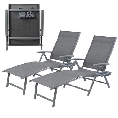 Kozyard Outdoor Folding Aluminum Lounge Chair with Table, 5-Position Adjustable, No Assembly Required — Perfect for Patio, or Poolside