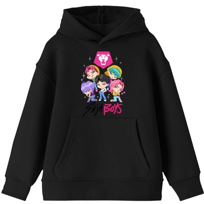 Kpop Demon Hunters HuntrX Logo Shiny Glow Boys Black Long Sleeve Hoodie