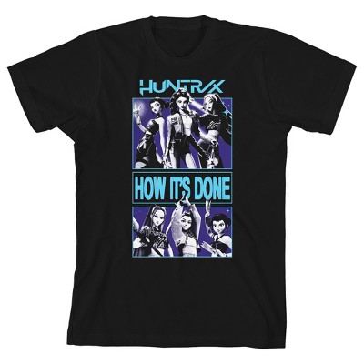 Kpop Demon Hunters Panel Art Huntrx Boys Black Crew Neck Shirt Sleeve T-shirt