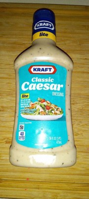Kraft Classic Caesar Dressing has a savory flavor that your family trusts and loves. Our pre-mixed dressing arrives ready for use with a quick shake. Made with premium-quality ingredients, our classic Caesar dressing lets you make the perfect salad. There are no artificial colors or flavors, and each serving has 120 calories. Made from a tangy blend of oil, vinegar, dried garlic and Parmesan and Romano cheese, our creamy dressing leaves your mouth bursting with flavor. Use Kraft's specially blended Caesar dressing to prepare saucy chicken Italiano for dinner, or enjoy a decadent and creamy Caesar salad. All you need is the lettuce and croutons and you've got the perfect side for your weeknight meals. Our 16 fluid ounce bottle of Caesar dressing has a clear exterior, so you're able to easily monitor how much dressing remains. Each squeezable dressing bottle comes with a convenient applicator top so you can add the perfect amount to all your favorite dishes.