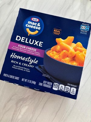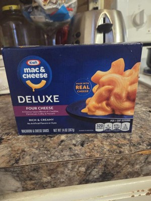 The Kraft deluxe macaroni & cheese four cheese dinner has so many flavors of creamy cheese. It’s become a new favorite. My son loves it and gives 5 stars for the cheesy taste. It’s a large step above the traditional Kraft but I do still buy that occasionally as well. I recommend this to others who love macaroni & cheese. It’s one I buy once I run out to keep in my pantry if there is a request. Great packaging by Kraft on this box as well! Reasonably priced.