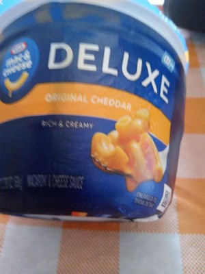 Kraft Deluxe Easy mac : * Packaging: The individual cups are convenient for single servings. * Convenience: Super quick and easy to prepare in the microwave. * Portion Size: Perfect for a small snack or a light meal. * Taste: It has that classic, cheesy Kraft flavor that many people enjoy. * Texture: The macaroni is soft and the cheese sauce is creamy.