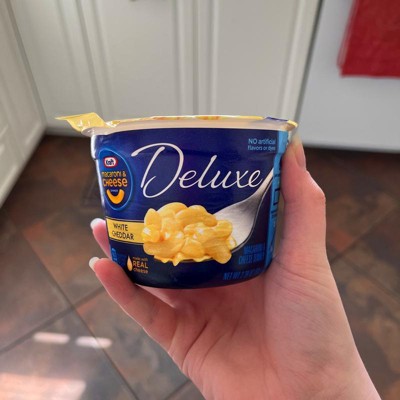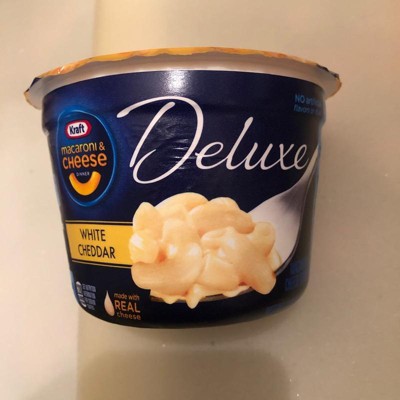 - KRAFT MAC AND CHEESE CUPS: Four 2.39 oz cups of Kraft Deluxe White Cheddar Mac & Cheese Macaroni and Cheese Dinner