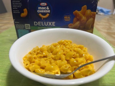 Help yourself to a bowl of comfort. Kraft Deluxe Gluten Free Mac & Cheese Original Flavor is a convenient boxed dinner made with brown rice and corn pasta. Enjoy the same delicious taste of our pasta and cheesy goodness without gluten. Looking for gluten free foods or easy meals for dinner? Gluten Free Kraft Mac and Cheese delivers. Our 12-ounce mac and cheese dinner includes gluten-free macaroni pasta and original flavor cheese sauce mix to make a tasty gluten free snack, side or addition to a meal. Make macaroni and cheese a part of your gluten free meal kids love. With no artificial flavors, Kraft Mac & Cheese is always a great family dinner choice. Preparing mac and cheese is a breeze. Just boil 6 cups of water, stir in the pasta and cook for 8-10 minutes. Then drain the water, do not rinse and return to the pan. Then squeeze the cheese sauce over the hot pasta and stir until blended. Whether you're looking for gluten free snacks for adults or kids, gluten free sides or a gluten free lunch, Kraft Macaroni and Cheese is a great choice. Stir up new ways to enjoy Kraft Mac n Cheese by adding protein or spices to make it your own. Try gluten free options like crispy bacon, shredded rotisserie chicken, steamed broccoli, fresh herbs, and more! A wholesome tradition, Kraft Mac & Cheese has been bringing generations together since 1937. Kraft Mac & Cheese inspires the positive power of comfort, so keep your pantry stocked with our gluten free meals and enjoy cheesy goodness anytime.