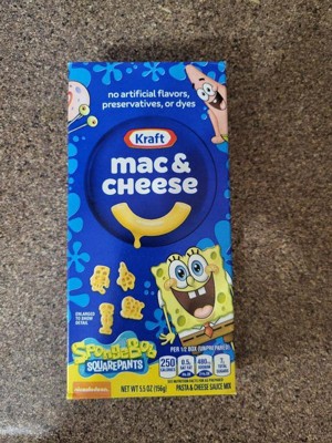 - KRAFT MAC AND CHEESE: Four 5.5 oz boxes of Kraft Original SpongeBob SquarePants Mac & Cheese Macaroni and Cheese Dinner