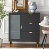 Buylateral Kragen Buffet Black: Gold-Tone Accents, Frosted Glass, Pine Wood Legs, Storage Cabinet