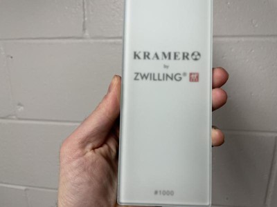 Japanese water stones are an efficient and effective tool for keeping your knives sharp. Using just a few drops of water (no soaking necessary), your knives will be sharp in a matter of minutes - no oil necessary. This Kramer by ZWILLING set features a coarse 400-grit glass stone for dull knives or for reshaping blades, a finer 1,000-grit glass stone for honing, and a 5000-grit glass stone for finishing touches. The bamboo sharpening stone sink bridge holds the stones when in use. Also included in this set is the easy-to-follow Sharpening Instructional DVD by master bladesmith Bob Kramer.