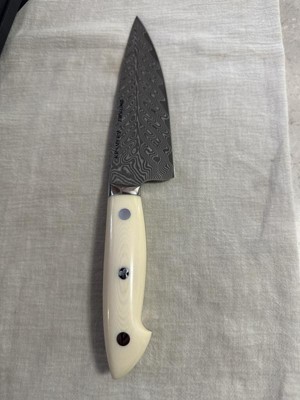 [This review was collected as part of a promotion.] You can't go wrong with a Kramer knife. Wicked sharp, balanced perfectly, just a pleasure to hold and use. I could not be happier.