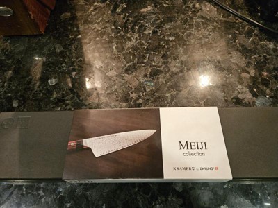 [This review was collected as part of a promotion.] Im so happy with the quality, craftsmanship, and beauty of my new Kramer Zwilling Meiji. My first high end knife. What a beggining to a new obsession.