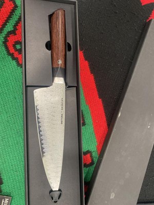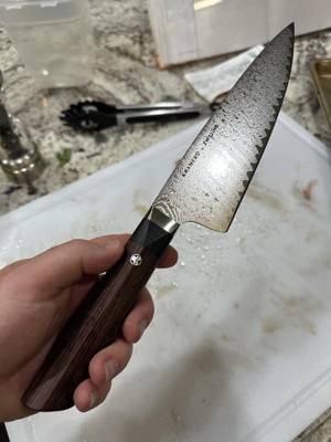 [This review was collected as part of a promotion.] This is the best knife I own. The balance and design is perfect for all types of knife work. This appears to be designed for someone who does extensive chopping, slicing, and dicing, but the blade is sharp enough to filet a fish. The handle may be a personal preference but I hold the knife closer to the blade. For every day or home cooks this exact handle may not be preferable. 5 out of 5 though from a private caterer.