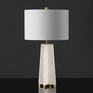 - Accent Table Lamp crafted with Alabaster, Iron, Cotton