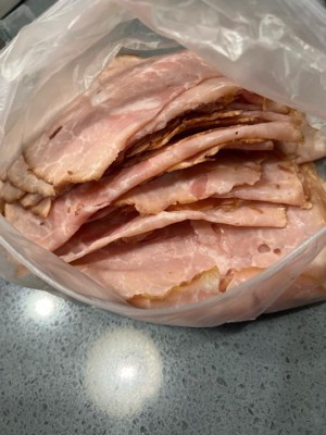[This review was collected as part of a promotion.] Loved this ham! I got it sliced a little bit thicker in order to be able to cut it up for omelets and able to use one slice for a sandwich! I love the large diameter of the surface area of the ham, able to fold over and comfortably fit between two slices of bread. High quality brand!