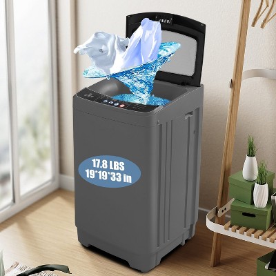 KRISRATE 17.8Lbs Portable Washing Machine, 2.4 Cu.ft Full Automatic Portable Washer with 10 Programs 8 Water Levels, Drain Pump, Glass Top Lid, Gray