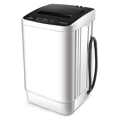 Equipped with sturdy side handles for secure grip and easy mobility, plus child lock feature for added peace of mind. The powerful motor delivers exceptional washing and tumbling performance while the compact design makes it perfect for apartments, RVs, and small spaces.