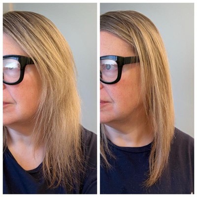 [This review was collected as part of a promotion.] My hair was so dirty with build up and you see from the second picture it is clean and shiny. I have a lot of hair. It looks thin but there’s a lot. This shampoo and conditioner smells great and I really like it. The conditioner was very thick. That being said it was a little difficult to rinse. But I could run a comb through it after wash with no tangles.