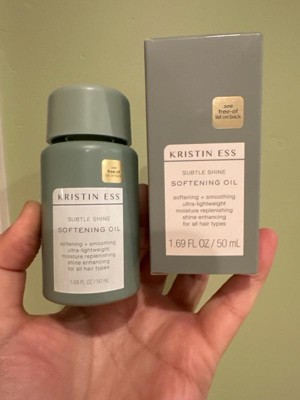 [This review was collected as part of a promotion.] **Kristin Ess Subtle Shine Softening Oil Review** I've recently incorporated the Kristin Ess Subtle Shine Softening Oil into my haircare routine, and it has quickly become a must-have product for me. Here’s why: **Performance:** This oil delivers on its promise of adding subtle shine and softness to the hair. After just a few uses, I noticed a significant improvement in the texture of my hair. It feels smoother, softer, and looks much healthier. The shine is natural and not greasy, giving my hair a polished and vibrant appearance. **Application:** The oil is lightweight and easy to apply. A little goes a long way, which makes the product last longer. I use just a few drops on damp hair before styling, and it absorbs quickly without leaving any residue. It’s also great for taming frizz and flyaways on dry hair. **Scent:** The fragrance is light and pleasant, not overpowering. It leaves my hair smelling fresh and clean, which is a nice bonus. The scent doesn’t clash with other hair products I use, which is important for maintaining a harmonious scent profile. **Packaging:** The packaging is sleek and functional. The bottle is easy to handle, and the dropper allows for precise application, ensuring that you don’t accidentally use too much product. The design also looks great on my vanity. **Ingredients:** I appreciate that Kristin Ess products are formulated with quality ingredients. This oil is free of harmful chemicals and is cruelty-free, aligning with my preference for ethical beauty products. It’s suitable for all hair types, including color-treated hair, which adds to its versatility. **Overall Experience:** My overall experience with the Kristin Ess Subtle Shine Softening Oil has been excellent. It delivers exactly what it promises: subtle shine, softness, and improved hair manageability. It’s a great finishing touch to my haircare routine, and I love the healthy, radiant look it gives my hair. I highly recommend this product to anyone looking to add a touch of luxury and effectiveness to their haircare regimen. It’s a game-changer for achieving soft, shiny, and beautifully manageable hair.