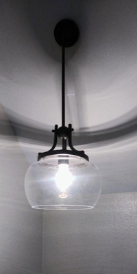 This is a beautiful light. By far my favorite in the whole house. It is at the bottom of my stairwell on a sloped ceiling. It was really easy to install but just a little tip for you....the glass globe has 3 screw holes and I tried all 3 before I found which way it lined up best. The bronze metal is more of a matte finish which I love. I only used 2 of the 4 rods and it's the perfect height. I wish I had ordered this same light for my island and kitchen sink.