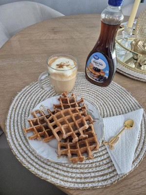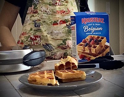 Krusteaz waffle mix is delicious. Crispy outside and soft inside. The taste is just perfect I don’t need to add more syrup. The price affordable, easy to cook , quick breakfast.
