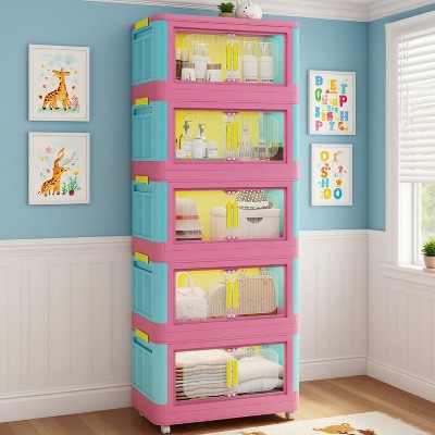 KTMBDW 20" Side Wide Folding Storage Cabinet ,Collapsible Storage Bins with Door, Plastic Storage Cabinet with Wheels for Craft, Home, Pantry, Dorm