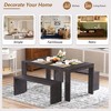 - 3-piece Dining Set: A dining table and two benches Included. The two benches can be completely placed under the table, increasing space utilization. The bench design replaces the traditional dining chairs, not only increasing the seating capacity, but also making the space around the dining table more open and transparent.