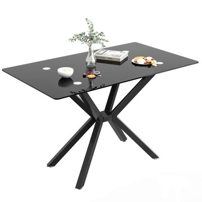 KTMBDW 35.4¡± Square Glass Dining Table, Tempered Glass Tabletop and Metal Tubular Legs, Modern Style Table for Home, Kitchen, Dining Room, Walnut
