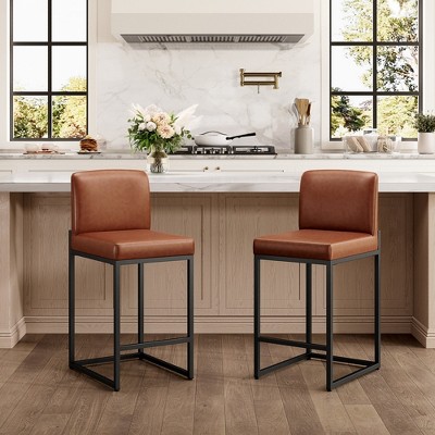 KTMBDW 360¡ã Swivel Bar Stools Set of 2, 26 Inch Counter Height Bar Stools, Modern Faux Leather for Kitchen Island, Dining, Brown & Beige