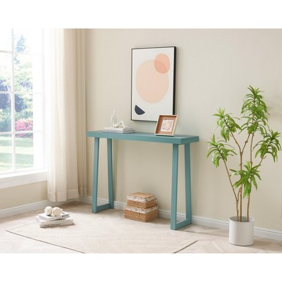 KTMBDW 55-Inch Fluted Console Table, Oval Top Sofa Table Behind The Couch, Farmhouse Entryway Table with 2 Drawers for Hallway, Living Room, Blue