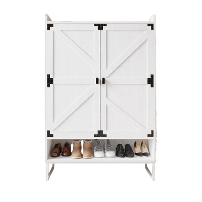 KTMBDW 5/6-Tier White Hollow Carved Shoe Rack - Wood-Plastic Board Storage Organizer - Narrow Entryway Boots Display Holder