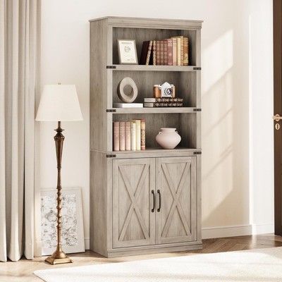 KTMBDW 60" Sideboard Buffet Cabinet with Storage, Farmhouse Coffee Bar Cabinet with Rattan Doors & Transparent Glass for Living Room, Brown