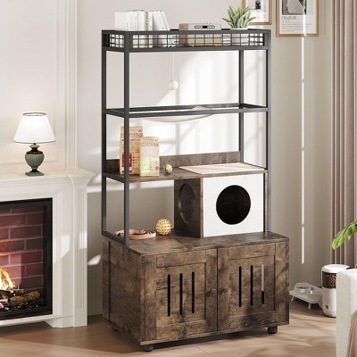 KTMBDW Cat Litter Box Enclosure, Hidden Litter Box Furniture with Scratch Pad, Farmhouse Indoor Cat House Washroom End Table, White