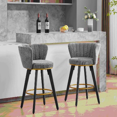 KTMBDW Football Print Counter Height Bar Stools Set of 2, 28 inch Velvet Upholstered Barstools with Backs, Kitchen Stools, Bar Chairs, Black