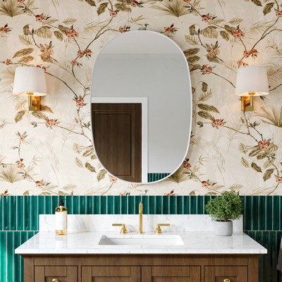 KTMBDW Curved Wood Frame Accent Mirror, Farmhouse French Country Decorative Wall Mirror, Round 36"L x 36"W, White