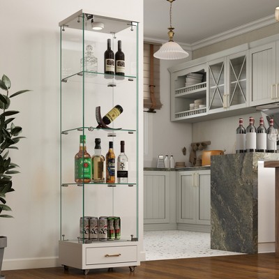 The stylish, dustproof, four-tier design elegantly showcases collectibles such as figurines, wine and photo frames, and can be seamlessly integrated into any family style. It perfectly blends with your elegant home decoration and adds highlights to your room. The bottom features four smoothly sliding wheels with brakes for easy movement, and the top is equipped with stabilising accessories for enhanced stability.