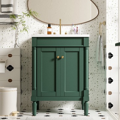 Our bathroom cabinet is designed with convenient storage in mind. The cabinet doors feature built-in shelves, providing a secure space to store bath essentials such as cosmetics, shampoos, shower gels, razors, and more, preventing items from easily slipping off. The drawers are thoughtfully designed with partitioned compartments, allowing you to neatly store bathroom essentials, keeping your bathroom clean and organized.