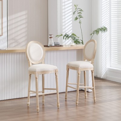 KTMBDW Farmhouse Fabric Chairs with Round Back, Upholstered Dining Chairs Set of 2, Oval Side Chairs for Dining Room/Living Room, Brown
