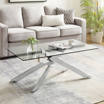 KTMBDW Glass Coffee Table, Clear Double Layer Glass Coffee Table for Living Room, Clear Glass & Metal Frame