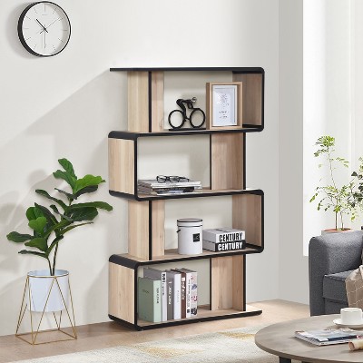 KTMBDW Glass Display Cabinet 4-Shelf with Door and Lock, Curio Cabinets, Tempered Glass Floor Standing Bookshelf for Bedroom, Living Room,Office,Black